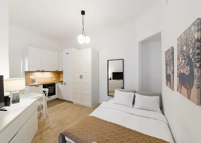 The 1-room Nowoczesne Studio W Сentrum Warsaw provides swift access to various city landmarks, such as the Warsaw University of Technology, located nearly 5 minutes' walk away.
